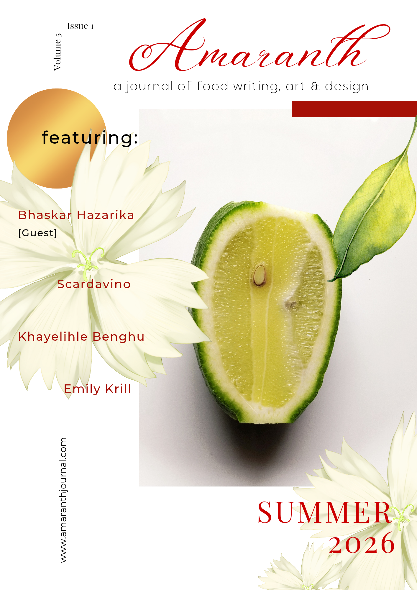 Amaranth focuses on STORYTELLING and invites writing and art on the broad theme of FOOD.